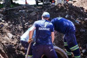A equipe de manutenção externa do Semae atuava desde a última terça-feira (14), na Rua Felipe Uebel, esquina com a Rua Barbacena, no Bairro Santo André. O local apresentava um vazamento de água, sendo necessária a troca de uma peça antiga, chamada luva de reparo. Também houve a necessidade do conserto da rede de esgoto. O serviço se estendeu até a tarde da quarta-feira (15).